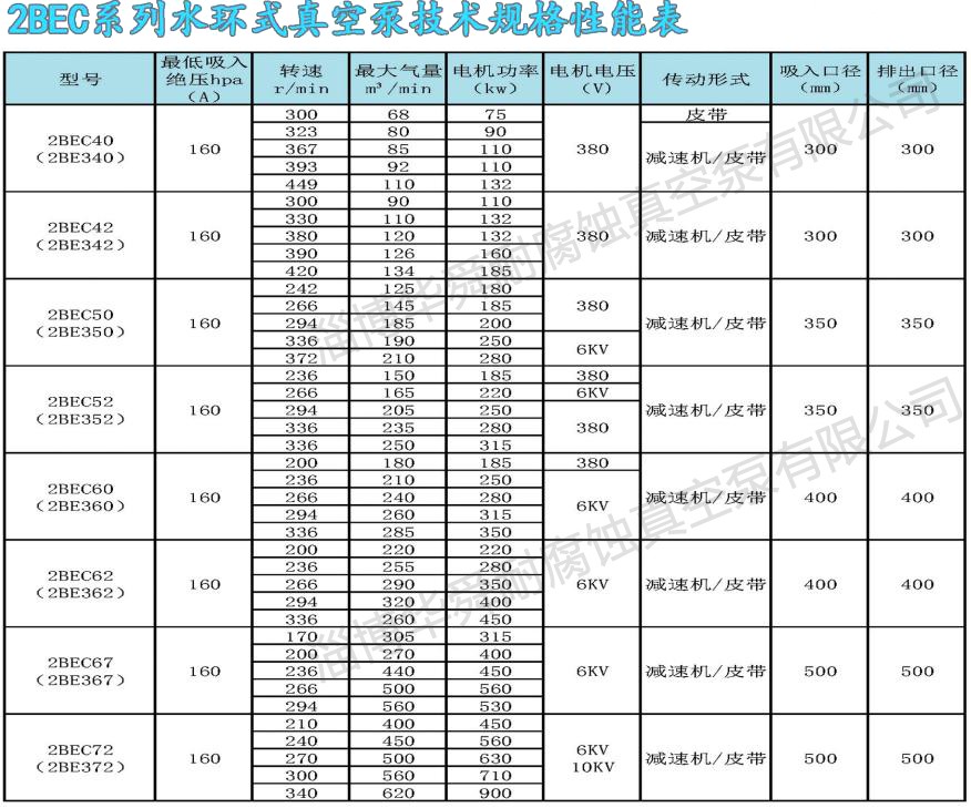 2BE系列水環(huán)真空系及壓縮機,是我公司在多年科研成果和生產(chǎn)經(jīng)驗的基礎(chǔ)上,結(jié)合國際同類產(chǎn)品先進技術(shù),研制開發(fā)的高效節(jié)能產(chǎn)品,通常用于抽吸不含固體顆粒,不溶于水,無腐蝕性的氣體,以便在密閉容器中形成真空和壓力。通過改變結(jié)構(gòu)材料,亦可用于抽吸腐蝕氣體或腐蝕性液體做工作液。廣泛用于造紙、化工、石化、輕工、制藥、食品、冶金、建材、電韻、煤暖、金屬礦山、化等行業(yè)。本系列泵采用單級單作用的結(jié)構(gòu)形式,具有結(jié)構(gòu)簡單,維修方便,運行可,高效節(jié)能的優(yōu)點,并能適應(yīng)排水量大,載荷沖擊波動等惡劣工況。我們對關(guān)鍵部件,如分配板,葉輪和系軸進行了系列優(yōu)化設(shè)計,簡化了結(jié)構(gòu),提高了性能,實現(xiàn)節(jié)能。采用球墨鑄鐵或焊接葉輪,葉片一次沖壓成形,型線合理:輪轂全部加工,從根本上解決了動平衡問題。葉輪與系軸采用熱裝過盈配合,性能可靠,運行平穩(wěn)。葉輪焊接后,整體進行熱處理,使葉片具有良好的韌性,葉片的抗沖擊,抗折彎能力得以根本保證,能適應(yīng)載荷沖擊波動等惡劣工況。2BE系列泵,自帶氣水分離器,多位置設(shè)有排氣口,泵設(shè)有排氣檢修口,葉輪與分配板間通過定位軸承兩娉壓益調(diào)整,安裝使用方便,操作簡單,便于維修。